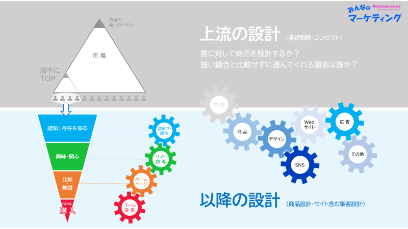 続きまして、上流工程の次はマーケティング下流の設計です。