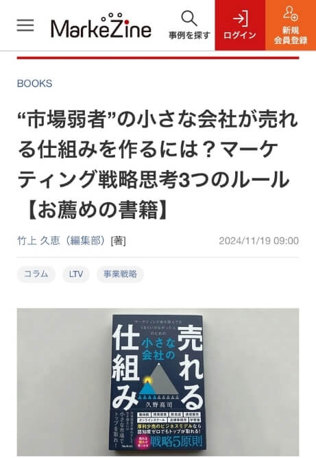 2024年10月フォレスト出版さんから「マーケティング本を読んでもうまくいかなかった人のための小さな会社の売れる仕組み」という本を出版をさせていただきました。