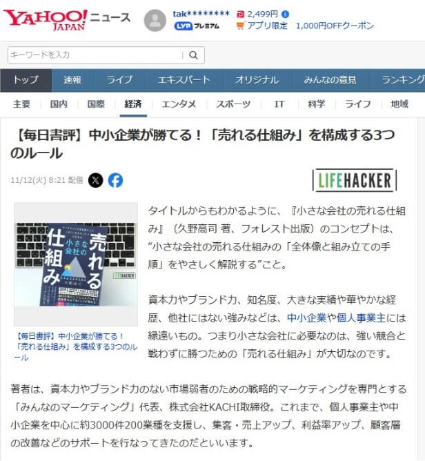 - 2024年10月にフォレスト出版より 『小さな会社の売れる仕組み』 を出版